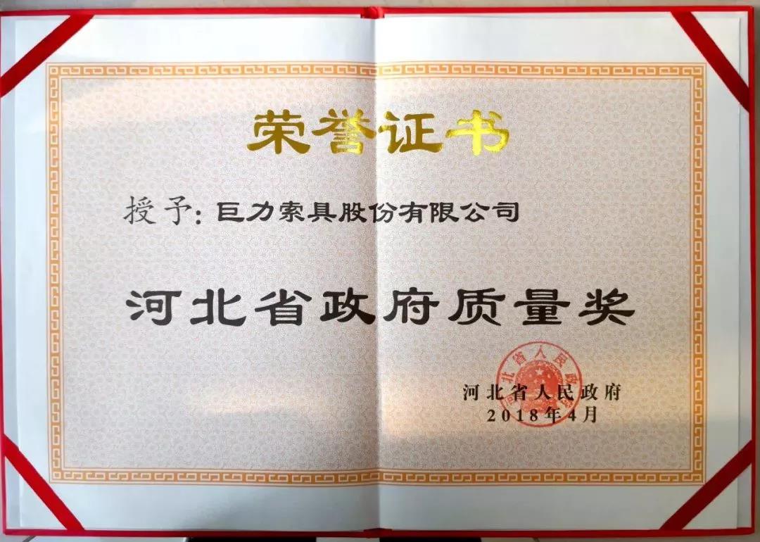 巨力索具榮獲河北省政府質量獎——再次證明實力